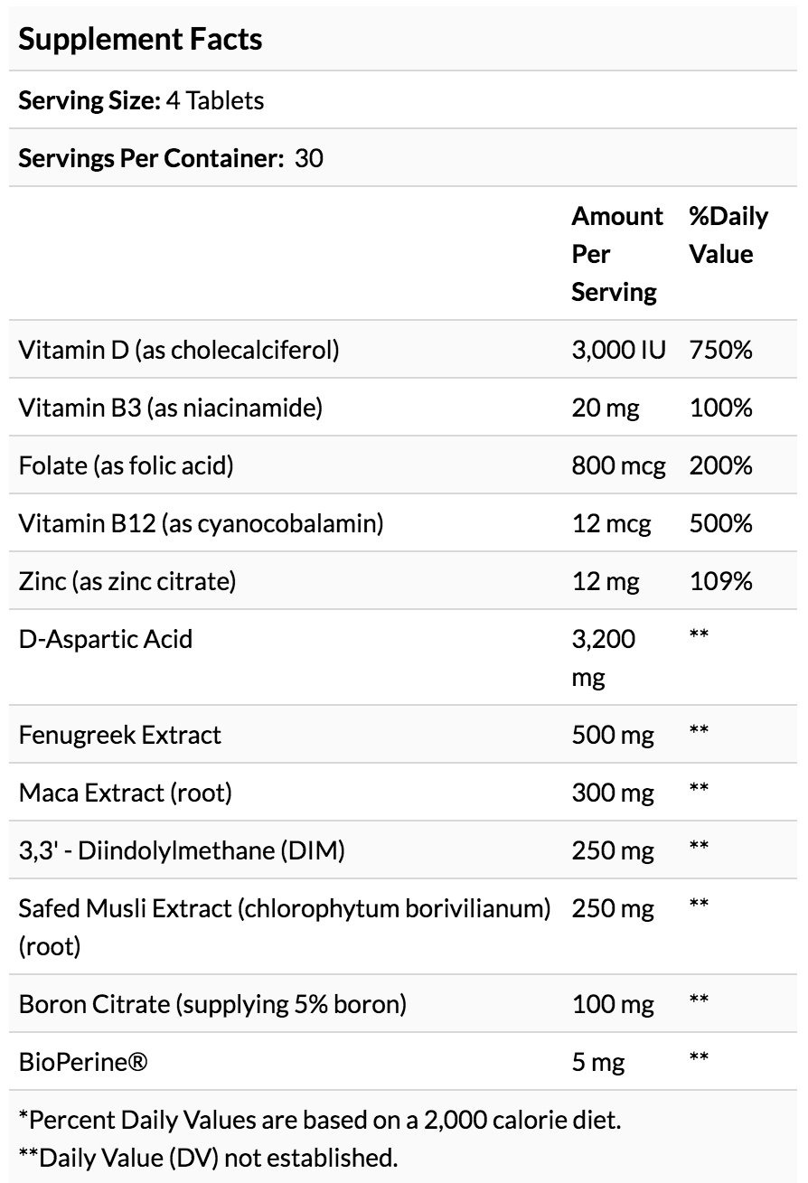 The blend of natural ingredients like the mineral boron and d-aspartic acid promotes the increase of free testosterone and regulates total testosterone Vitamin K1 helps